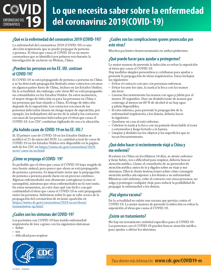 CDC – Centers for Disease Control and Prevention Coronavirus (COVID-19): Click the link for more info from CDC